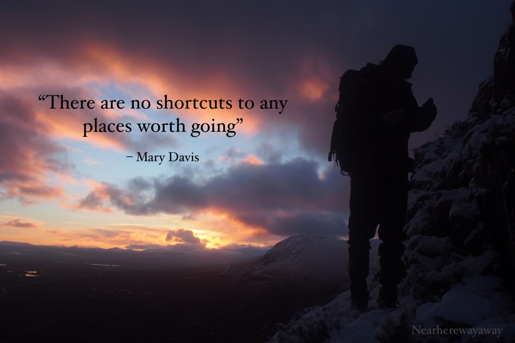 Waking up hours before the break of the dawn and driving to Glencoe was worth the effort when we got to admire the sunrise from Buachaille Etive Mor in Scotland. The photo is taken a few years ago when I did the North Buttress winter climbing route with my friends. There are easier paths up Buachaille Etive Mor, but we wanted to do some winter climbing and it was all worth the early start and frozen fingers. Definitely worth taking the long route.